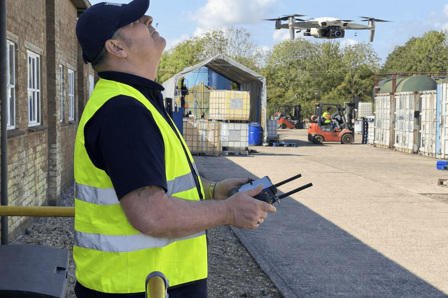 ian operating drone at industrial site